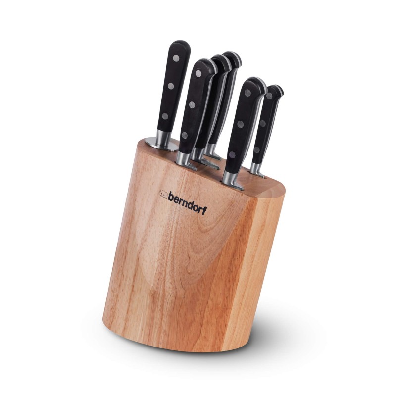 Elegancki i funkcjonalny zestaw noży kuchennych BS Komplett to niezbędny element w każdej kuchni. W skład zestawu wchodzi 5 wysokiej jakości noży oraz stal do ostrzenia, umieszczone w drewnianym stojaku wykonanym z naturalnego drewna gumowego. Każdy stojak ma unikatowy odcień, dzięki czemu stanowi nie tylko praktyczne, ale i designerskie uzupełnienie kuchennego wnętrza.