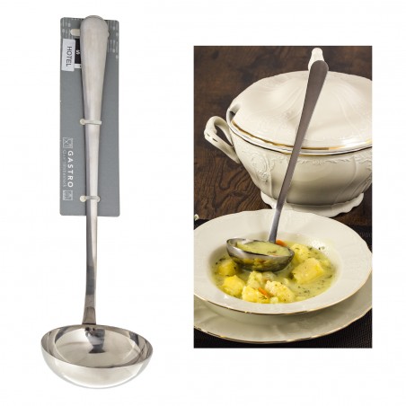 Chochla Hotel Berndorf Sandrik to praktyczna nabierka wazowa będąca częścią profesjonalnej linii Hotel. Wykonana z polerowanej stali nierdzewnej 18/0, doskonale sprawdzi się w codziennym użytkowaniu zarówno w kuchni domowej, jak i gastronomicznej. Jest to niezbędny przyrząd kuchenny, przeznaczony do wygodnego nabierania i serwowania zup, sosów oraz innych potraw płynnych. Produkt został wyprodukowany przez firmę Berndorf – renomowaną markę obecną na rynku od 1843 roku, znaną z przywiązania do jakości, tradycji i doskonałego wykonania.