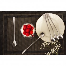 Eleganckie, długie łyżeczki ze stali nierdzewnej z linii Hotel to połączenie ponadczasowego designu i wysokiej jakości wykonania. Młodzieńcze, gładkie wzornictwo oraz okrągłe uchwyty zwężające się ku górze nadają sztućcom dyskretną elegancję. Pięknie polerowane powierzchnie i wyraziste kształty sprawiają, że łyżeczki doskonale prezentują się zarówno w domowej jadalni, jak i w profesjonalnym cateringu czy gastronomii. Idealne do deserów, lemoniady, koktajli i napojów serwowanych w wysokich szklankach.