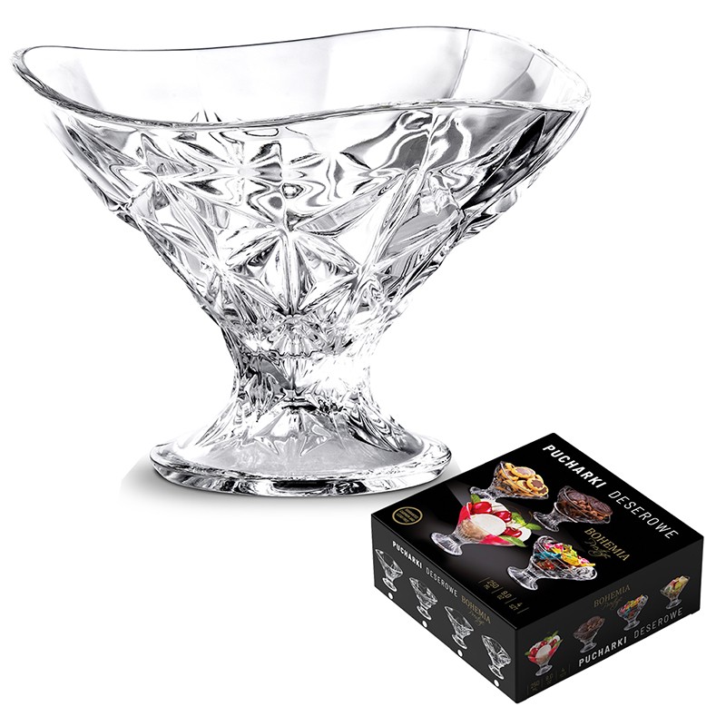 Pucharki deserowe z wysokiej jakości szkła kryształowego są niezastąpionym dodatek w Twoim domu, idealne do serwowania lodów, deserów oraz do przechowywania słodyczy. Ich elegancki design dodaje blasku każdemu stołowi, a czekoladki, cukierki czy ciastka prezentują się w nich wyjątkowo atrakcyjnie.