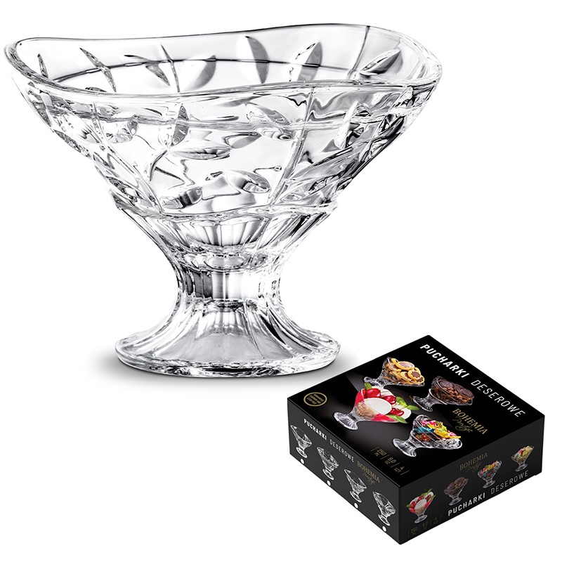 Pucharki deserowe z wysokiej jakości szkła kryształowego są niezastąpionym dodatek w Twoim domu, idealne do serwowania lodów, deserów oraz do przechowywania słodyczy. Ich elegancki design dodaje blasku każdemu stołowi, a czekoladki, cukierki czy ciastka prezentują się w nich wyjątkowo atrakcyjnie.