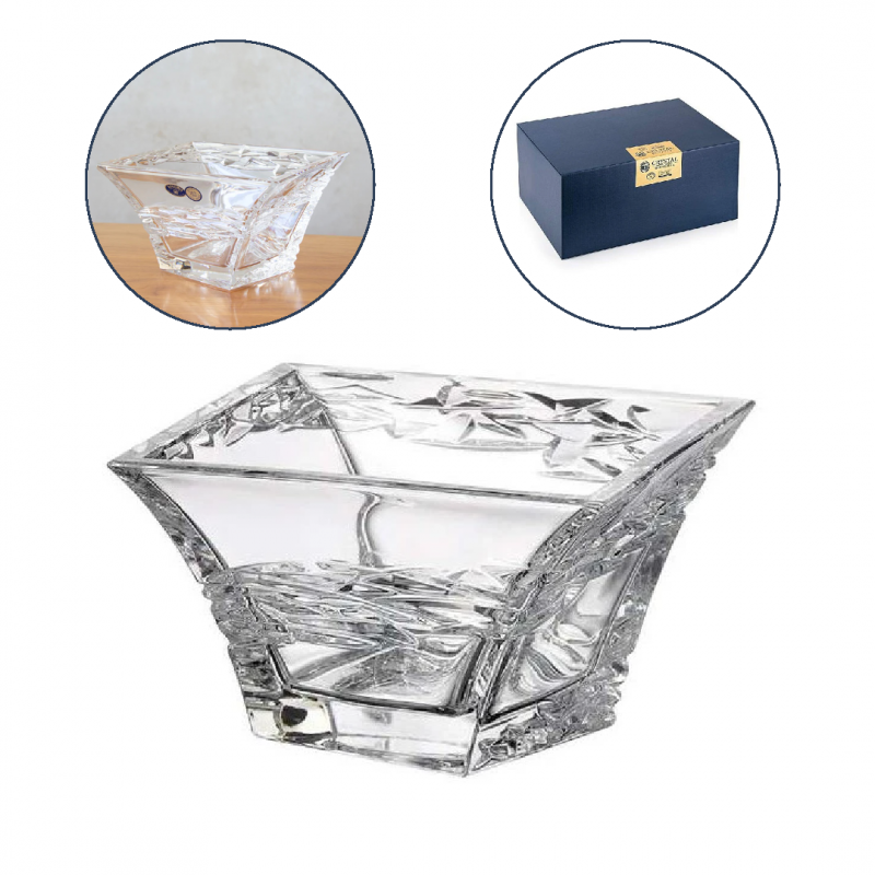Miska kryształowa z kolekcji Samurai to doskonałe połączenie tradycyjnego czeskiego rzemiosła szklarskiego z nowoczesnym designem. Wykonana z wysokiej jakości szkła kryształowego ołowiowego w hucie Crystal Bohemia, przyciąga uwagę grubymi ściankami, błyszczącym wykończeniem i nietypowym kształtem – jej dno zostało lekko pochylone w kierunku krawędzi, co nadaje całości wyjątkowego, dynamicznego charakteru.