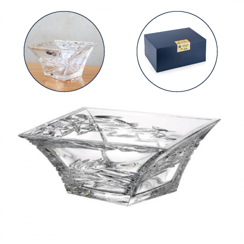 Miska kryształowa z kolekcji Samurai to doskonałe połączenie tradycyjnego czeskiego rzemiosła szklarskiego z nowoczesnym designem. Wykonana z wysokiej jakości szkła kryształowego ołowiowego w hucie Crystal Bohemia, przyciąga uwagę grubymi ściankami, błyszczącym wykończeniem i nietypowym kształtem – jej dno zostało lekko pochylone w kierunku krawędzi, co nadaje całości wyjątkowego, dynamicznego charakteru.