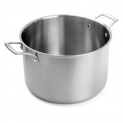 Trójwarstwowa konstrukcja: stal nierdzewna – aluminium – stal nierdzewna, zapewniająca doskonałe przewodzenie ciepła i wytrzymałość.