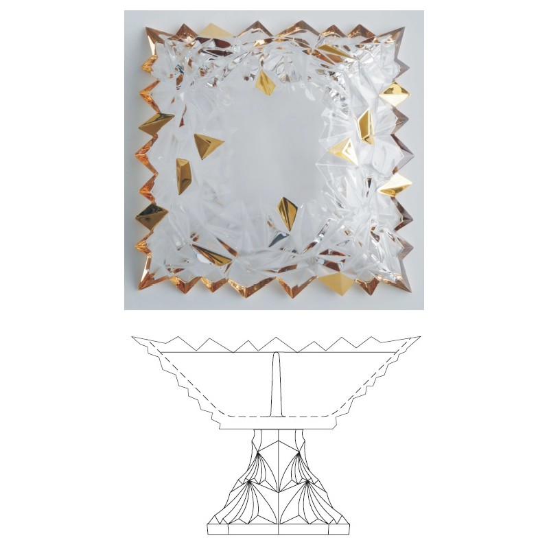 Przeźroczysta kryształowa misa na nodze Bohemia Jihlava Glacier Gold to elegancki element wyposażenia stołu, który łączy nowoczesny design z klasycznym szykiem. Kwadratowy kształt i złote zdobienia nadają wnętrzu wyjątkowego charakteru, a przeźroczysty kryształ efektownie mieni się w świetle. Misa doskonale sprawdzi się zarówno podczas uroczystych przyjęć, jak i codziennego użytkowania, dodając elegancji każdej aranżacji.