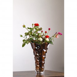 Elegancki kryształowy wazon Bohemia Honey Comb Smokey Honey to wyjątkowy element dekoracyjny, który przyciąga uwagę swoim bursztynowym kolorem oraz interesującą strukturą przypominającą plaster miodu. Wykonany z najwyższej jakości szkła kryształowego, zachwyca blaskiem i precyzją wykonania. Idealnie sprawdzi się zarówno jako ozdoba wnętrza, jak i w roli wazonu na kwiaty cięte, dodając aranżacji elegancji i wyrafinowanego charakteru. Jego oryginalna forma oraz ponadczasowy design czynią go również doskonałym pomysłem na prezent.