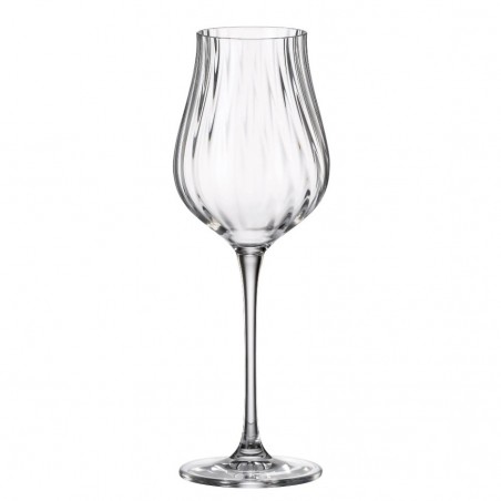 Komplet sześciu kieliszków do wina z kolekcji Limosa Optic to doskonały wybór dla miłośników elegancji i nowoczesnego designu. Wykonane z najwyższej jakości szkła kryształowego, te kieliszki zachwycają swoją idealną przejrzystością oraz starannie wykonanym, tłoczonym maszynowo, linearnym wzorem, który dodaje im wyjątkowego charakteru.