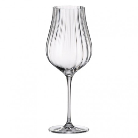 Komplet sześciu kieliszków do wina z kolekcji Limosa Optic to doskonały wybór dla miłośników elegancji i nowoczesnego designu. Wykonane z najwyższej jakości szkła kryształowego, te kieliszki zachwycają swoją idealną przejrzystością oraz starannie wykonanym, tłoczonym maszynowo, linearnym wzorem, który dodaje im wyjątkowego charakteru.