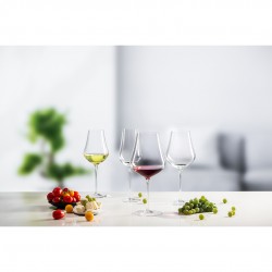 Idealnie przejrzyste, cienkie szkło kryształowe podkreśla barwę wina. Smukła czasza i wysoka nóżka nadają kieliszkom wyjątkowej lekkości wizualnej, a jednocześnie zapewniają komfort użytkowania i elegancką prezentację trunku.