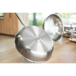 Trójwarstwowa konstrukcja – stal nierdzewna z aluminiowym rdzeniem dla szybkiego i równomiernego nagrzewania.