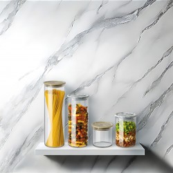Stylowy i praktyczny pojemnik SIMAX o pojemności 800 ml z szarą pokrywką w efekcie marmuru to doskonałe rozwiązanie do przechowywania żywności w kuchni. Wykonany z wysokiej jakości szkła borokrzemowego, wyróżnia się wytrzymałością i odpornością na wysokie temperatury. Idealny do przechowywania mąki, cukru, ryżu, kawy, makaronu, roślin strączkowych czy słodyczy. Dzięki eleganckiemu designowi sprawdzi się zarówno w nowoczesnych, jak i klasycznych wnętrzach kuchennych.