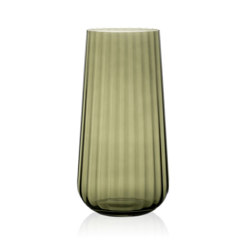 Wazon wykonany ze szkła optycznego charakteryzuje się wyjątkową przejrzystością i subtelnym połyskiem. Dzięki temu doskonale odbija światło, tworząc efektowną grę refleksów i nadając wnętrzu lekkości oraz wyrafinowania. To idealny wybór zarówno do nowoczesnych, jak i klasycznych aranżacji.