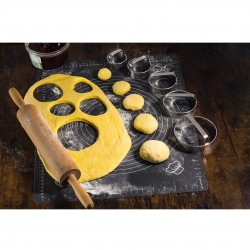 Wykrawacze do pączków, pierogów są wykonane z najwyższej jakości blachy angielskiej; są przystosowane do kontaktu z żywnością. Foremki są okrągłe, posiadają ostre krawędzie, dzięki którym wycinanie ciastek jest łatwe i przyjemne. Gładka powierzchnia wykrawaczy sprawia, że ciasto nie przykleja się do ścianek. Idealne do przygotowywania pączków na tłusty czwartek lub pierogów z mięsem lub owocami. Wykrawacze do ciastek rewelacyjnie nadają się do wszystkich wyrobów cukierniczych, takich jak np. pierniczki czy kruche ciasteczka, można z nich tworzyć okrągłe ozdoby na ciasta, np. z lukru lub kolorowej posypki.