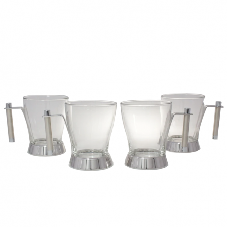 Elegancki komplet 6 szklanek Perle marki Regent to zestaw idealny zarówno do użytku domowego, jak i w profesjonalnych lokalach, takich jak hotele czy restauracje. Szklanki umieszczone są na metalowej podstawie z wygodnym uchem, które nie nagrzewa się podczas kontaktu z ciepłymi napojami, zapewniając komfort i bezpieczeństwo użytkowania. Starannie wykonane z wysokiej jakości szkła i stali nierdzewnej, prezentują się wyjątkowo efektownie na każdym stole. Cała kolekcja Perle pozwala na tworzenie spójnych i funkcjonalnych zestawów, które zachwycają estetyką i ergonomicznym designem.